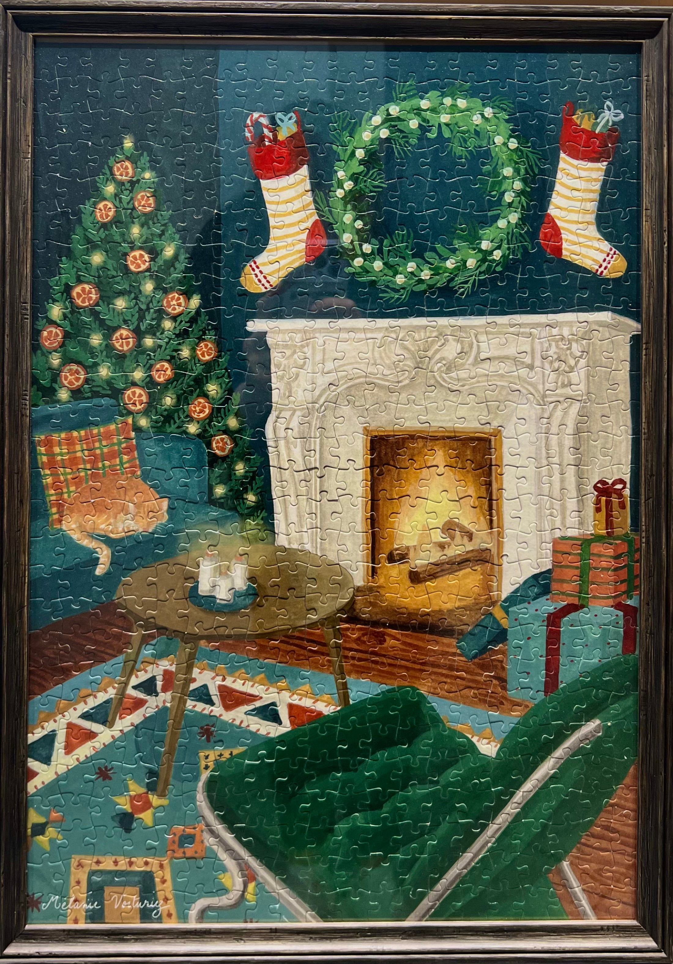 Immergiti nell'atmosfera natalizia con questa illustrazione calda e accogliente. Senti il fuoco che scoppietta piano nel camino mentre il gatto dorme sereno sul divano. Questa illustrazione è un chiaro invito a rilassarsi e a lasciarsi coccolare dalle piccole cose. Nella semplicità di casa.